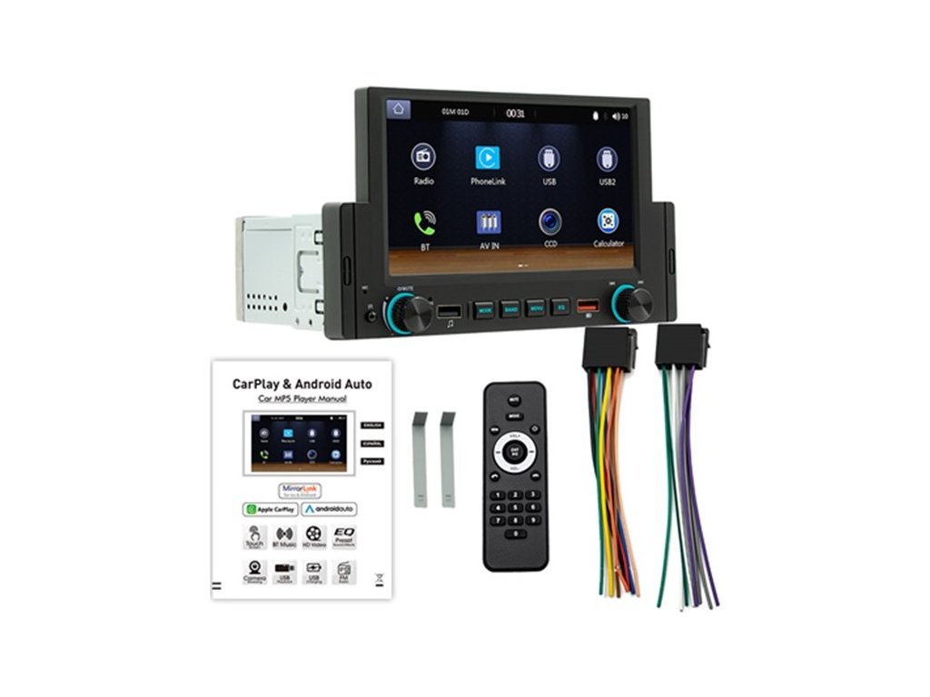 1DIN autorádio s 6,2" LCD/3x USB/Blutooth/CarPlay/AndroidAuto/Mirrorlink