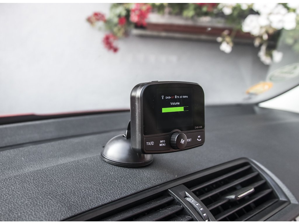 - súčasť balenia: DAB prijímač, magnetický držiak s prísavkou (na sklo alebo palubnú dosku), CL adaptér s 2x USB výstup (2,1 + 1 A), napájací kábel USB / micro USB, AUX kábel 3,5mm JACK, nalepovacie aktívny anténa, príchytky kábla