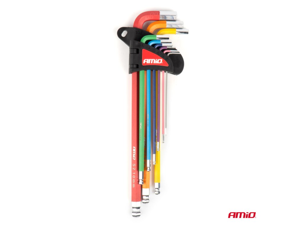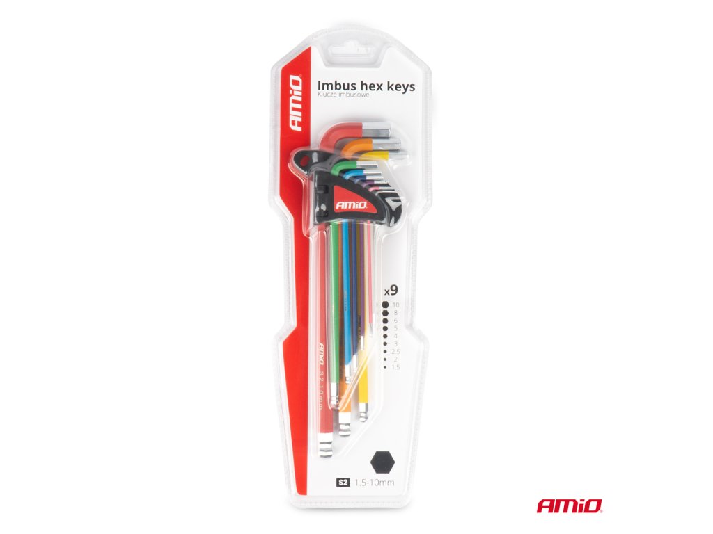 Zestaw kluczy imbusowych extra długich z kulką 9 szt. Materiał: S2 Rozmiary: 1.5,2,2.5,3,4,5,6,8,10 Długość max: 230mm
