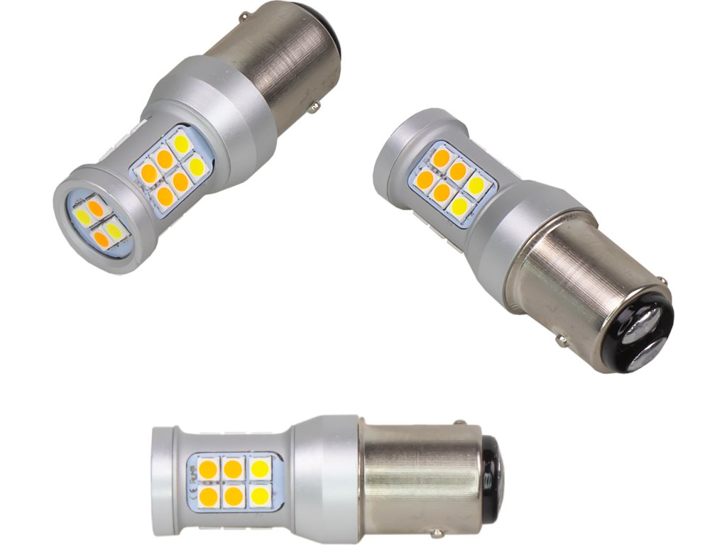 Náhradná LED žiarovka s päticou BAY15d (dvouvlákno), dvojfarebná (biela / oranžová), 22 x super svietivá SMD LED 5630.