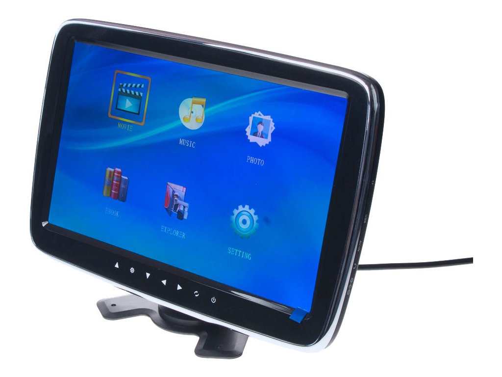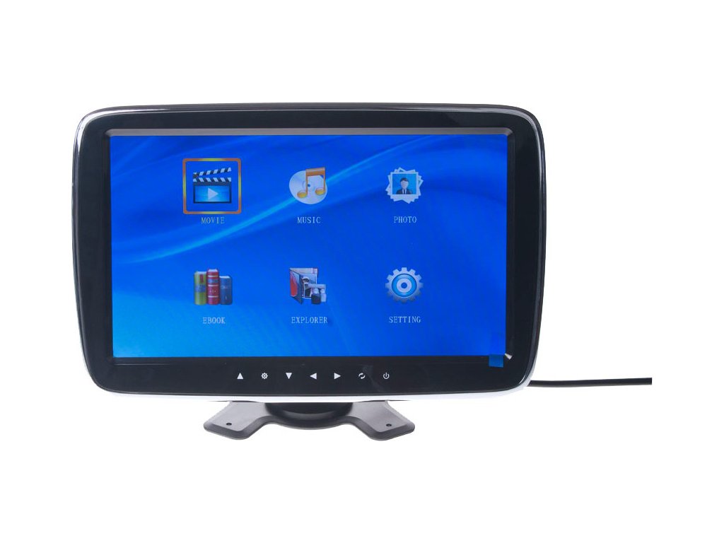 Kvalitný LCD monitor 10 "s dotykovými tlačidlami určený na montáž na palubnú dosku, s čítačkou microSD kariet, USB portom (možnosť prehrávania súborov: video, hudobné, fotografie, elektronická kniha) so zobrazením 16: 9 a FM modulátorom