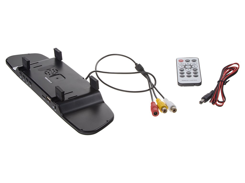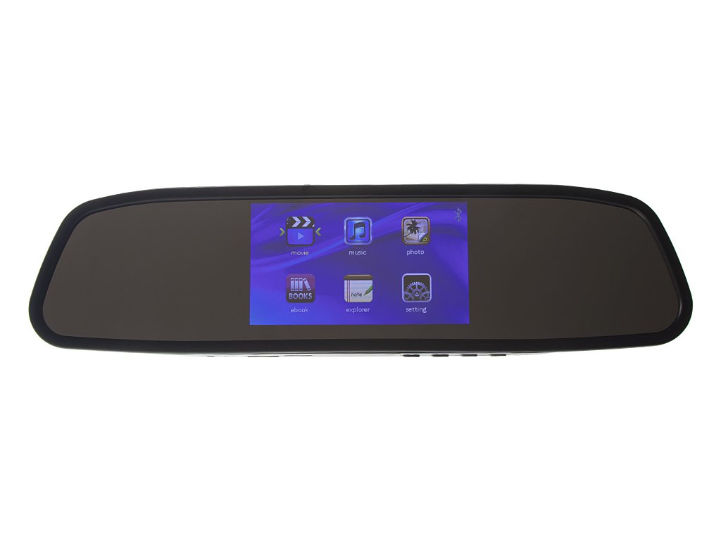 LCD monitor 4,3 "v elegantnom prevedení určený na upevnenie na spätné zrkadlo s čítačkou microSD kariet, USB portom (možnosť prehrávania súborov: video, hudobné, fotografie, elektronická kniha)