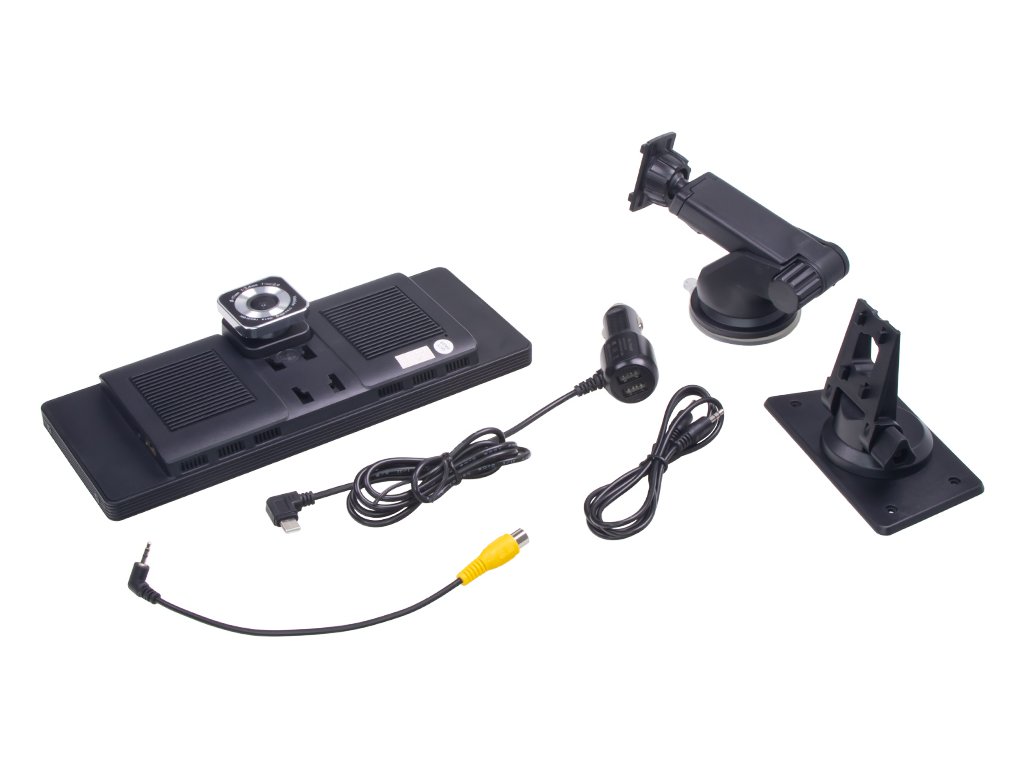 Obsah balenia: Monitor, držiak pre pevnú montáž + obojstranná páska, držiak s prísavkou, napájací kábel s CL koncovkou, AUX kábel (Jack 3,5 mm / Jack 3,5 mm), kábel pre pripojenie kamery (Jack 3,5 mm / RCA) dĺžka cca 0,3 m.