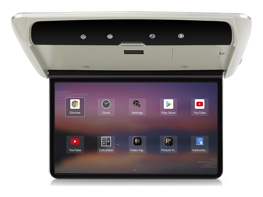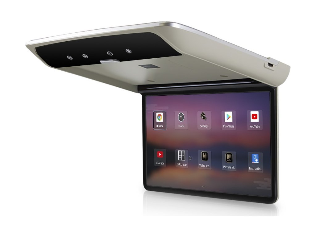 Kvalitný plochý stropný výklopný LED LCD monitor 13,3" s OS. Android, HDMI vstupom, čítačkou USB so zobrazením 16:9, dekoratívne osvetlenie (multicolor).