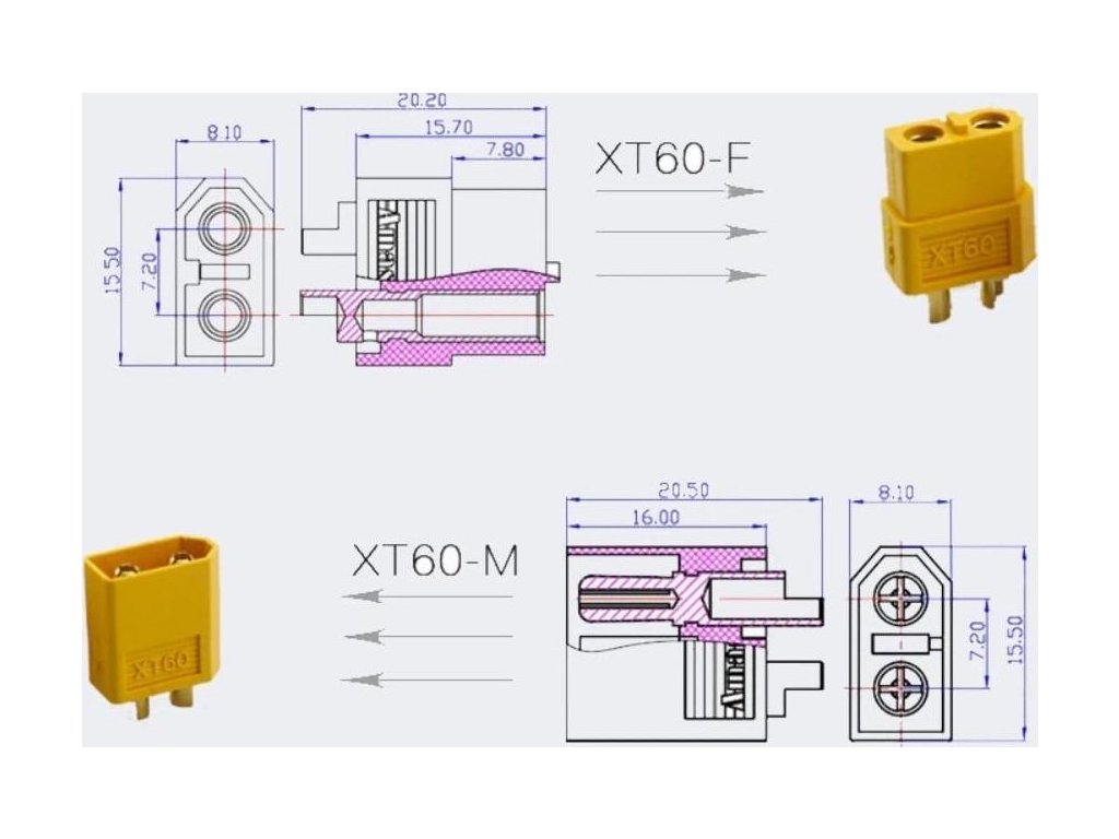 Univerzálny napájací konektor XT60 samica+samec, 2-pólový vrátane vodičov.