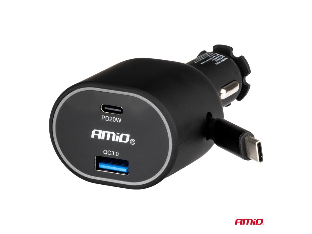 Rýchla autonabíjačka 3.0 s 30W C navíjacím káblom PD20W AMIO-04176
