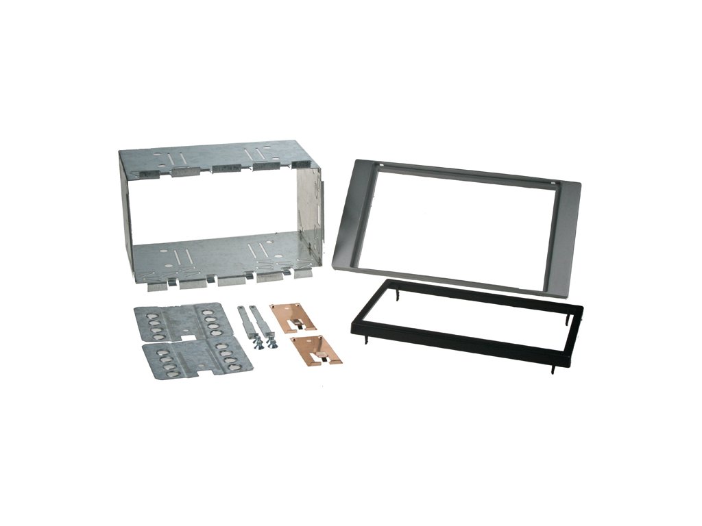 Plastový adaptér v striebornej farbe + kovový rámček slúži pre montáž neoriginálneho 2DIN autorádia.
