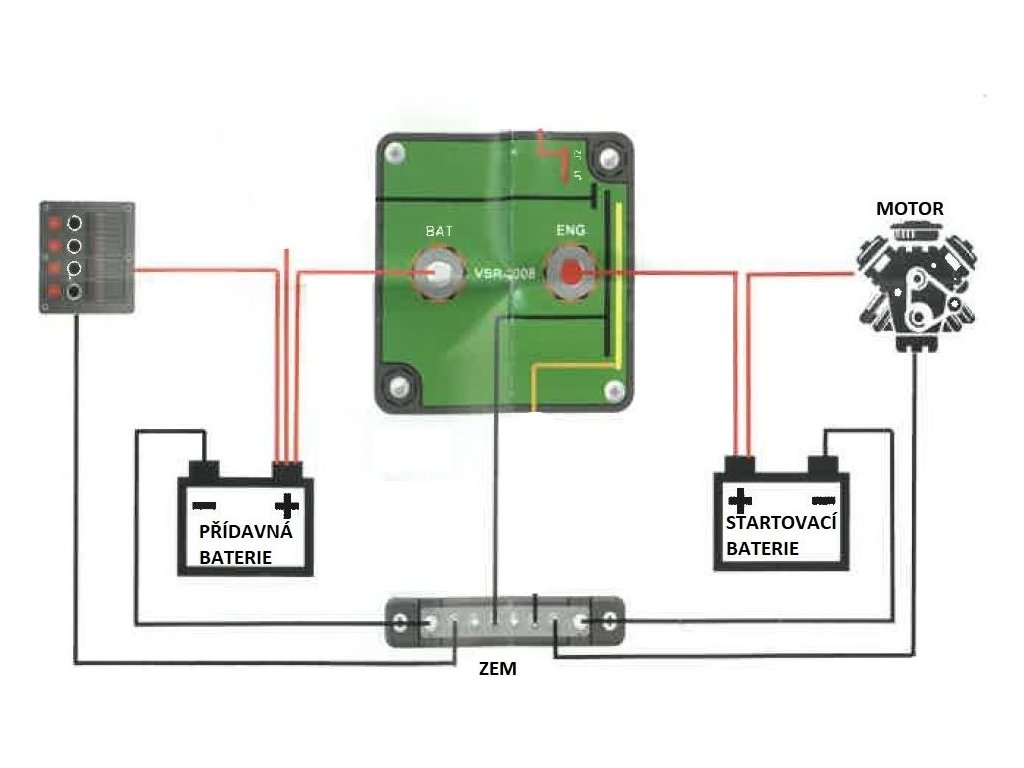 - odpojenie relé pri poklese napätia pod 12,8 V