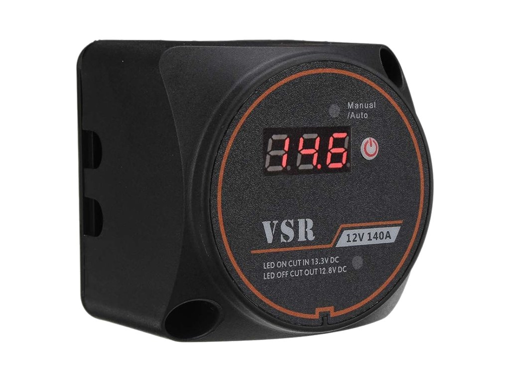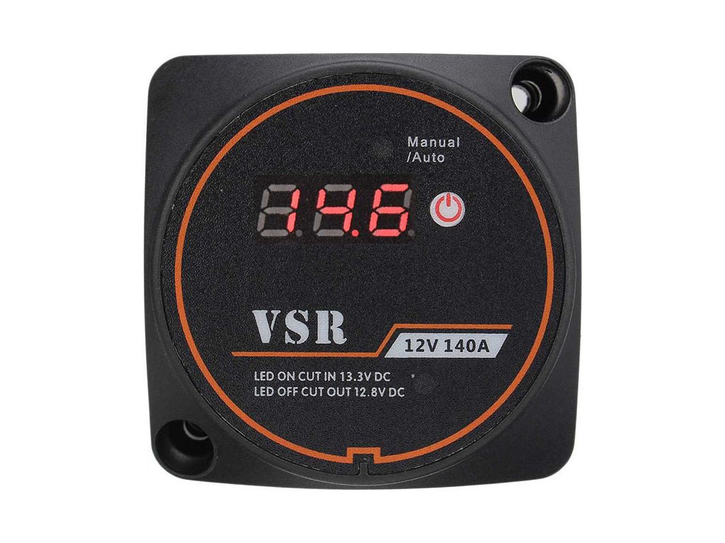 Automatické relé 12V 140A na pripojenie druhej batérie, vrátane voltmetra pre zobrazenie napätia batérie.