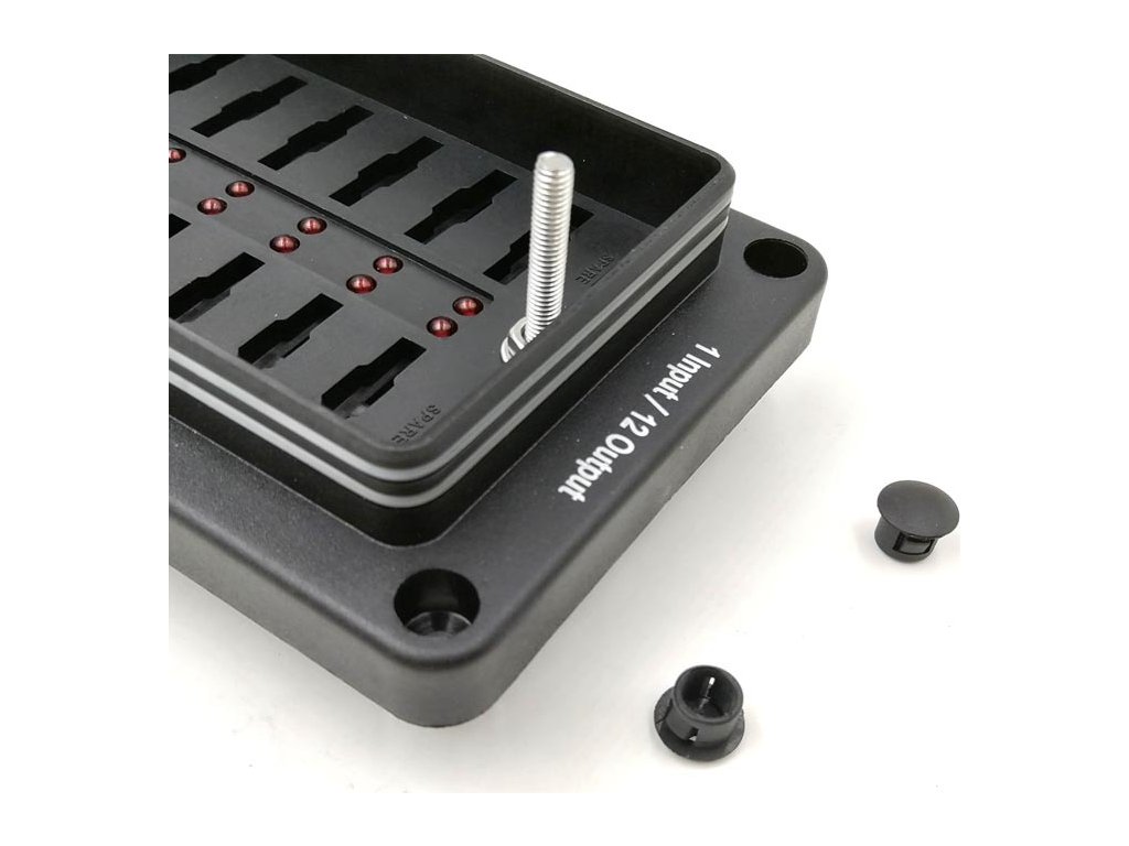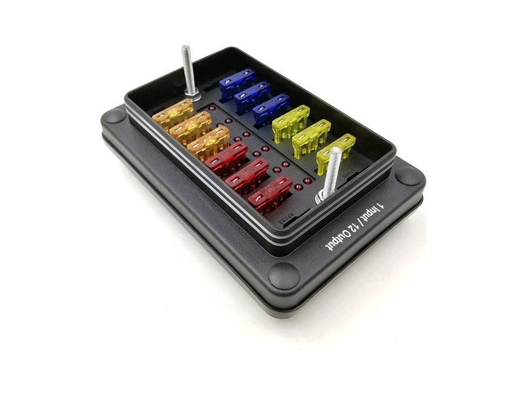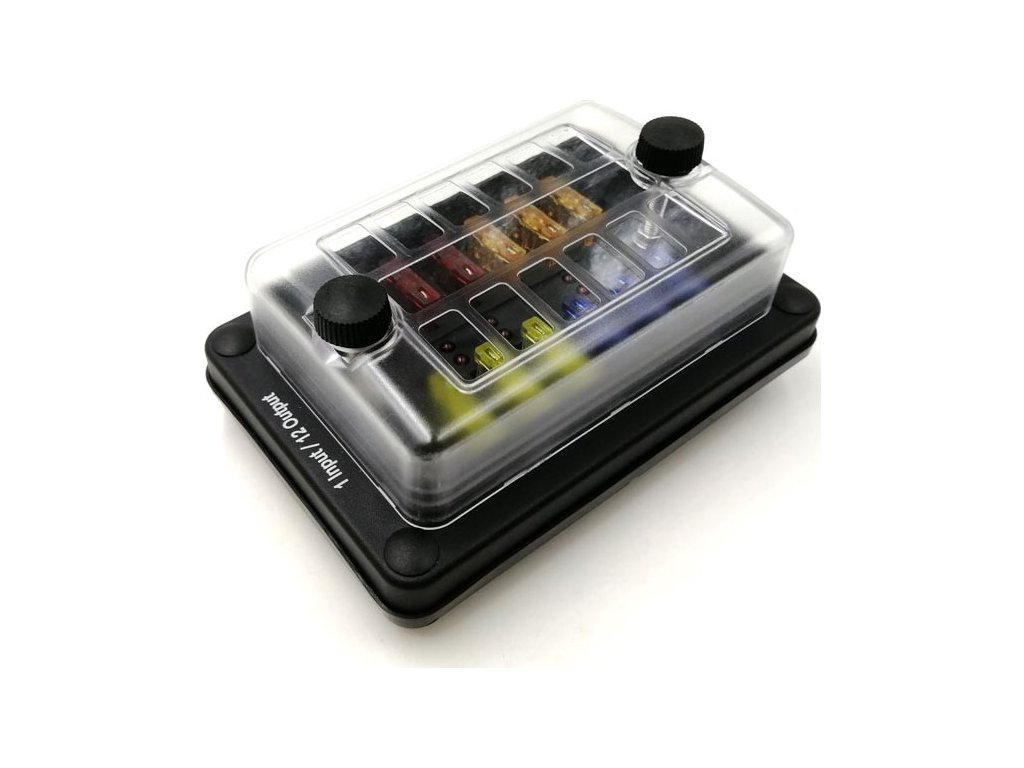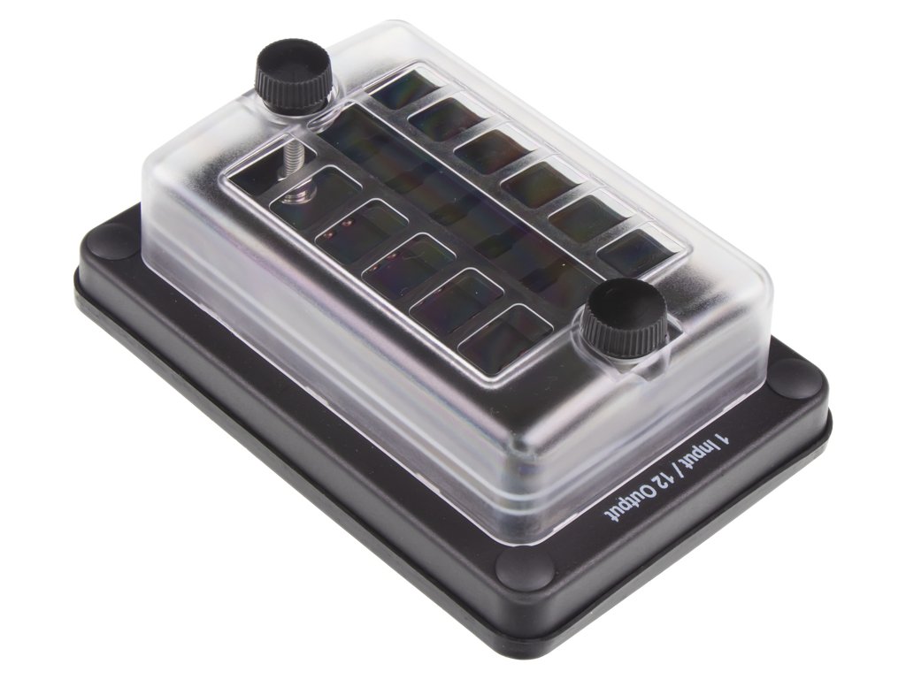 Združené vodeodolné poistkové puzdro pre 12 MIDI plochých poistiek.