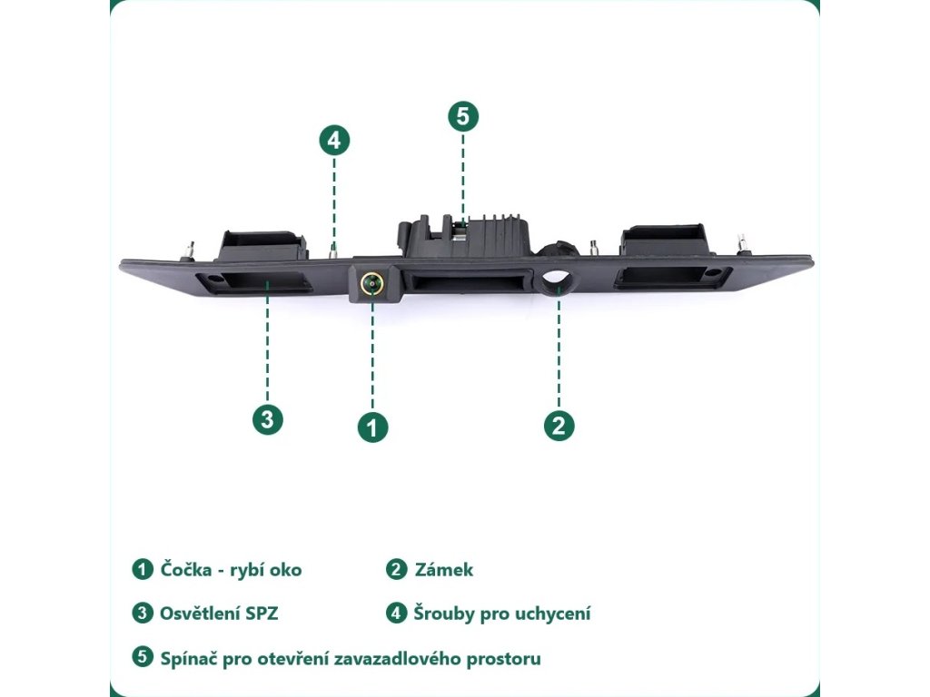 Kamera formát AHD/CVBS do vozidla Audi A3, A4, A6, B6, B7, S3, S6, A8, S8, RS4, RS6, A5, Q7 v držadle kufra