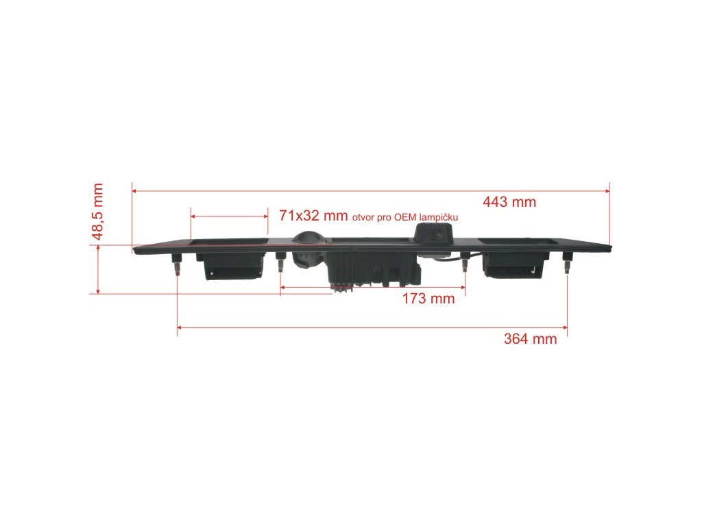 Farebná kamera integrovaná do ovládača kufra. Vhodné napr. Pre kombináciu s monitorom, alebo s adaptérmi mi-xxx pre pripojenie k originálnej navigácii. Montáž: Vyberte lištu nad zadnou ŠPZ a namiesto nej vložte do originálneho otvoru túto kameru, ktorá zároveň nahradí pôvodné puzdro pre lampičky a madlo spínače kufra (bez elektroinštalácie lampičiek a spínače).