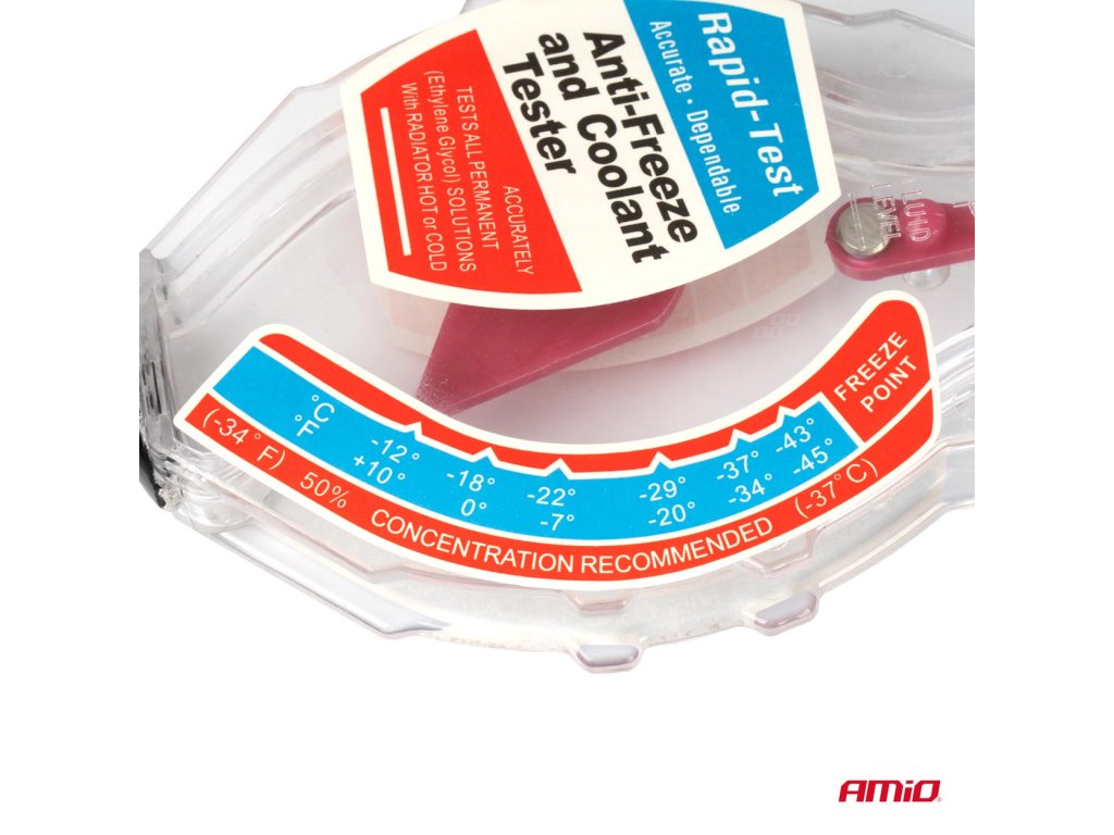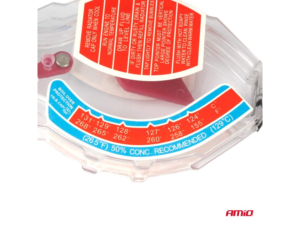 Easy to read scale & pointer Freezing to boiling points for anti-freeze, calibrated in °C and °F With radiator hot or cord
