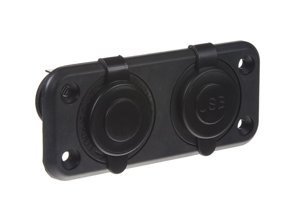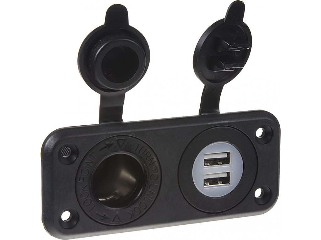 dvojitá zásuvka do panelu 1x CL (max. 20A) + 2x nabíjačka USB vodeodolná.